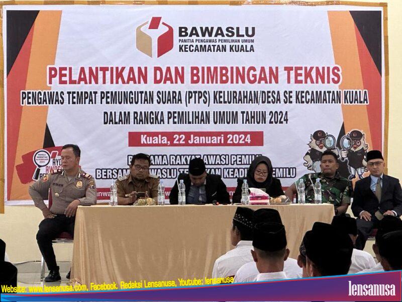 Dalam sambutan Kapolsek Kuala, menyampaikan; Kepada seluruh petugas Pengawas TPS agar tetap semangat dan Profesional dalam melakukan Pengawasan nantinya di setiap TPS saat dihari pencoblosan, dan Saya ucapkan selamat atas dilantiknya 54 orang Pengawas TPS.