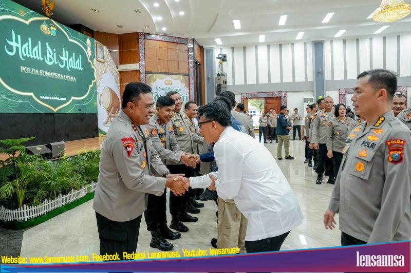 MEDAN | LENSANUSA.COM – Momentum Hari Raya Idul Fitri 1446 H dimanfaatkan Polda Sumatera Utara untuk mempererat kebersamaan dan sinergi antar personel. Pada Rabu (9/4/2025) pagi, Kapolda Sumut Irjen Pol Whisnu Hermawan Februanto, S.I.K., M.H., bersama para Pejabat Utama (PJU) dan seluruh personel Polda Sumut menggelar kegiatan Halal Bihalal di Aula Tribrata Polda Sumut.