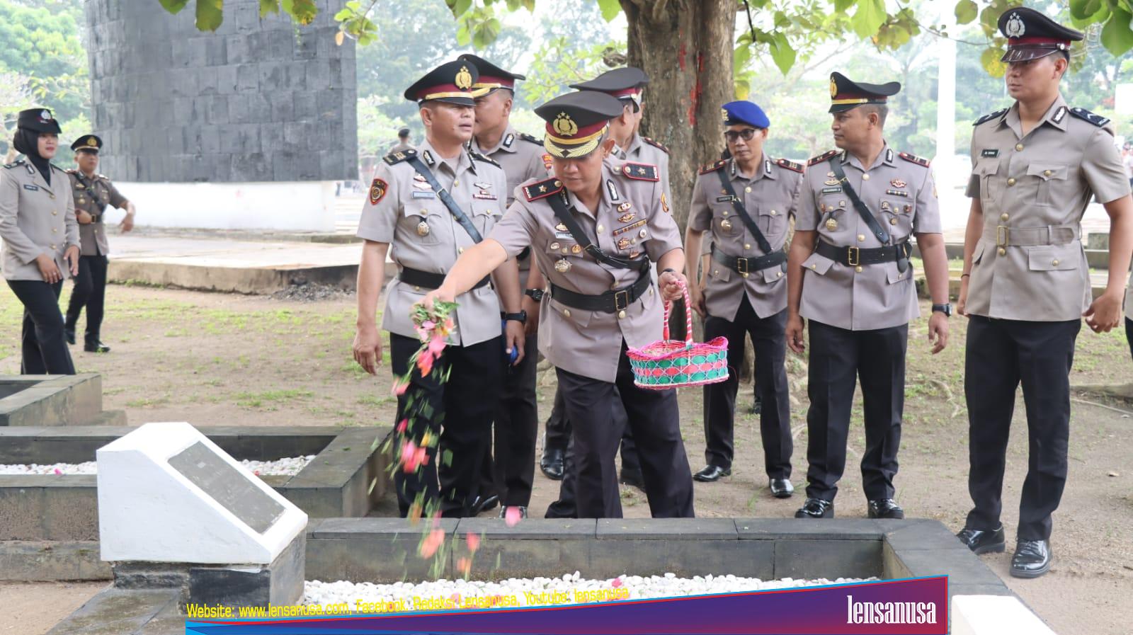 HUT Bhayangkara ke-78 Tahun 2024, Kapolsek Lalan Beserta Jajaran Mengikuti Giat Upacara Ziarah dan Tabur Bunga