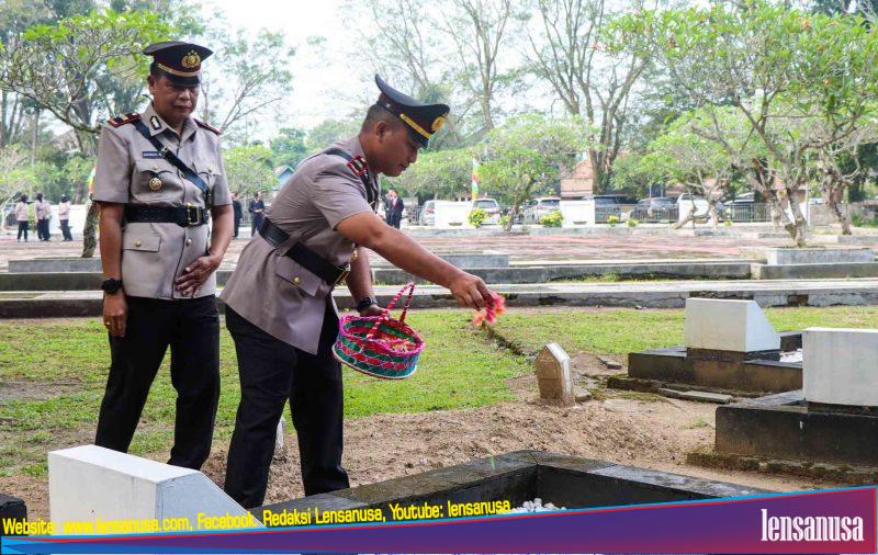 HUT Bhayangkara ke-78 Tahun 2024, Kapolsek Lalan Beserta Jajaran Mengikuti Giat Upacara Ziarah dan Tabur Bunga
