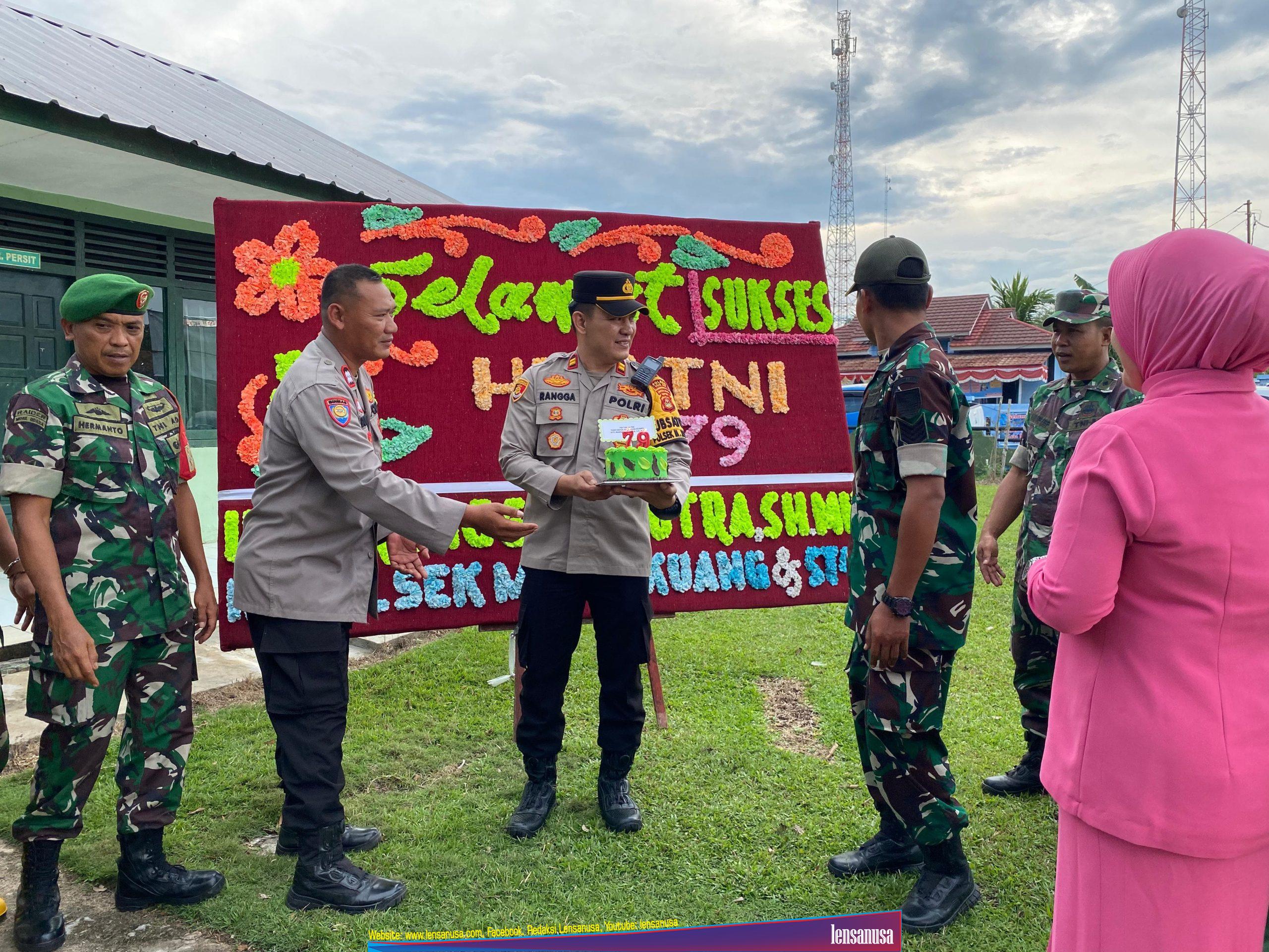 HUT ke-79 TNI, Kapolsek Muara Kuang Didampingi Ketua Bhayangkari dan Jajarannya Beri Kejutan ke Koramil 402-05 Muara Kuang