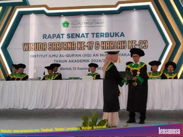 BANTUL | LENSANUSA. COM. – Institut Ilmu Al-Qur’an (IIQ) An-Nur Yogyakarta menggelar Rapat Senat Terbuka Wisuda Sarjana ke- XVII sekaligus Harlah ke-23 pada Sabtu (13/9/2025) di halaman kampus Ngrukem, Pendowoharjo, Sewon, Bantul.