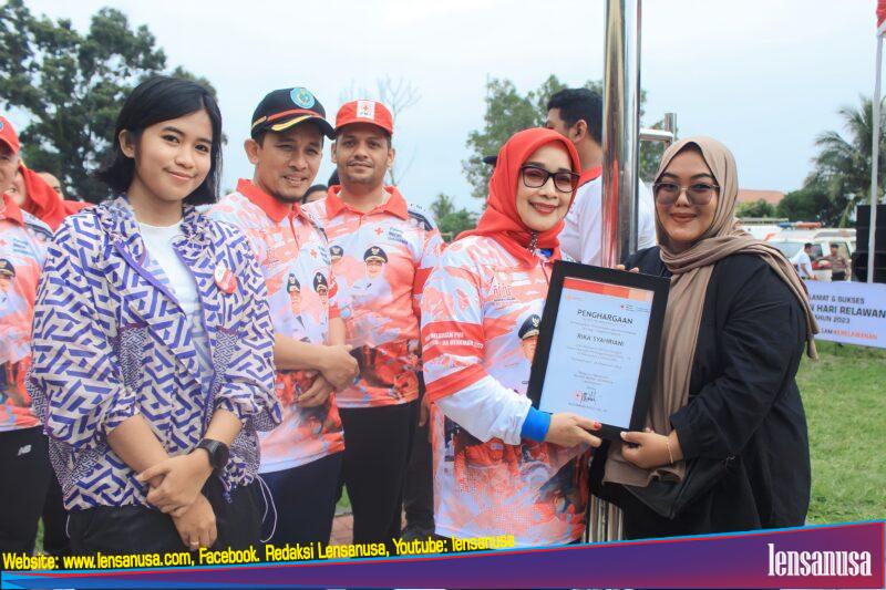 LABUHANBATU | LENSANUSA.COM-Wakil Bupati Labuhanbatu Hj.Ellya Rosa Siregar,S.Pd,MM menghadiri Peringatan Hari Relawan Palang Merah Indonesia (PMI) Kabupaten Labuhanbatu di Lapangan Ika Bina Rantauprapat. Sabtu (9/12/2023).