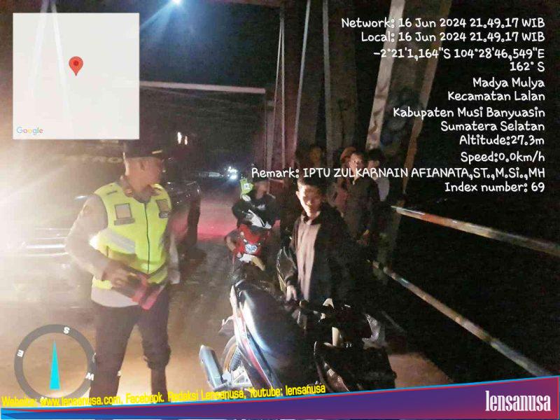 Jaga Keamanan Wilayah Pada Malam Hari Raya Idul Adha 1445 H, Kapolsek Lalan Pimpin Giat KRYD dan Patroli