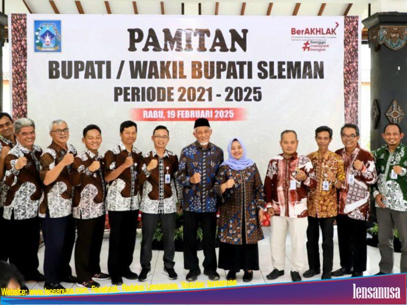 SLEMAN | LENSANUSA.COM. – Bupati Sleman Hj Kustini Sri Purnomo berpamitan dengan jajaran Pemerintah Kabupaten Sleman jelang akhir masa jabatannya. Bupati Kustini hadir di Pendopo Parasamya dengan didampingi sang suami, Sri Purnomo. Rabu (19/02/2025)
