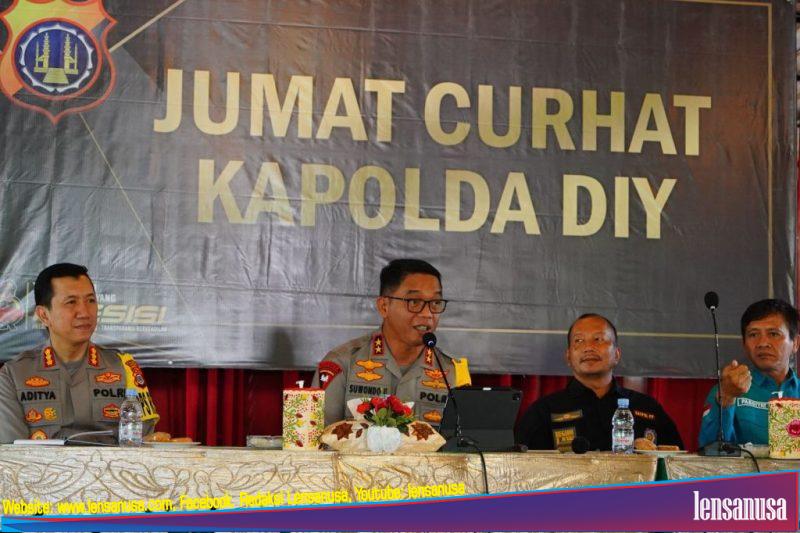 YOGYAKARTA|LENSANUSA.COM. – Kapolda DIY Irjen Pol Suwondo Nainggolan, S.I.K., M.H., menanggapi kekhawatiran yang dirasakan masyarakat Mergangsan dalam Jumat Curhat Kapolda DIY, Jumat (17/05/2024).