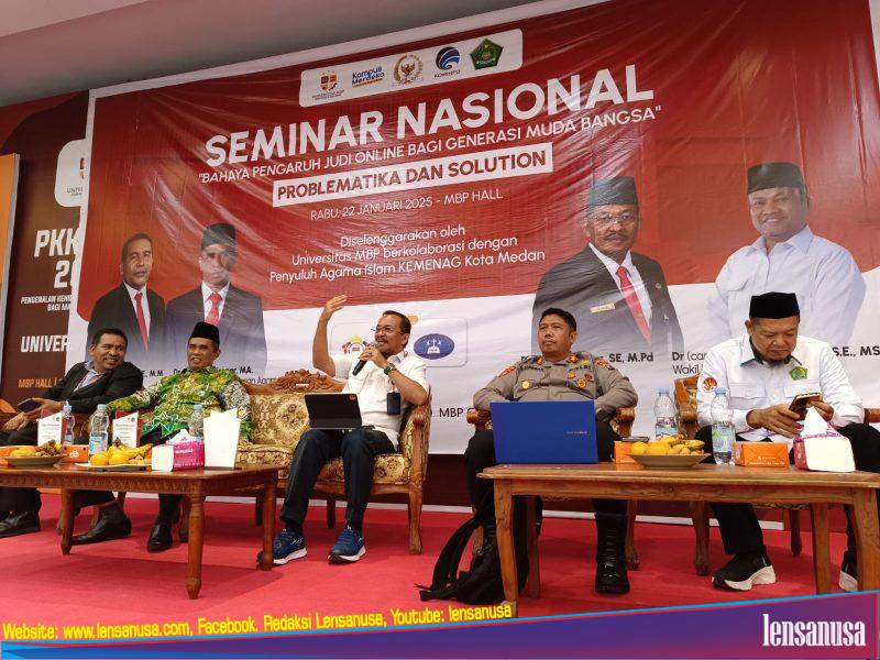 Hal tersebut disampaikannya pada acara seminar nasional bertajuk ‘Bahaya dan Dapak Judi Online Bagi Generasi Muda Bangsa’, yang diselenggarakan Penyuluh Agama Islam PPPK Kementerian Agama Kota Medan, di Kampus Universitas Mandiri Bina Prestasi (MBP), Jalan Jamin Ginting, Padang Bulan Medan, Rabu (22/1).