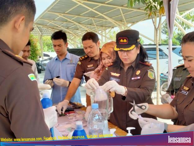 Pemusnahan barang bukti ini dilaksanakan Langsung oleh Kajari Rohil Yuliarni Appy MH, di saksikan Kadis kesehatan Rohil Afridah, Kapolsek Bangko Ihut MT, Koramil Bangko Siregar, Para kasi dan Pegawai di Lingkungan Kajari rohil.