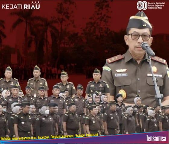 PEKANBARU | LENSANUSA COM – Pengamalan Tri Krama Adhyaksa dalam pelaksanaan tugas sehari-hari menjadi poin utama dalam amanat Kajati Riau Akmal Abbas SH., MH., saat memimpin Apel Kerja di halaman kantor Kejati Riau.(04/08/2025).