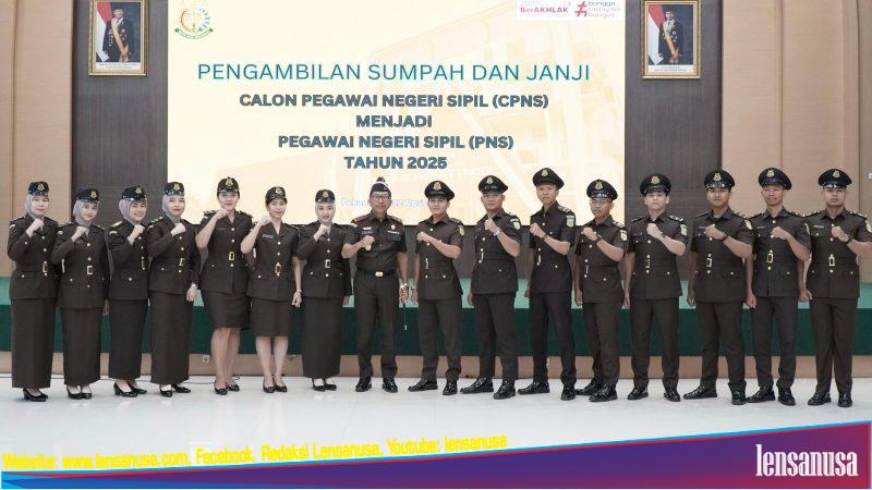 PEKANBARU| LENSANUSA.COM – Kepala Kejaksaan Tinggi Riau Akmal Abbas, S.H., M.H memimpin upacara pelantikan dan pengambilan sumpah Calon Pegawai Negeri Sipil (CPNS) menjadi Pegawai Negeri Sipil (PNS) Kejaksaan Tinggi Riau, Selasa (22/04/2025), bertempat di Sasana H.M Prasetyo, Gedung Satya Adhi Wicaksana Kejaksaan Tinggi Riau.