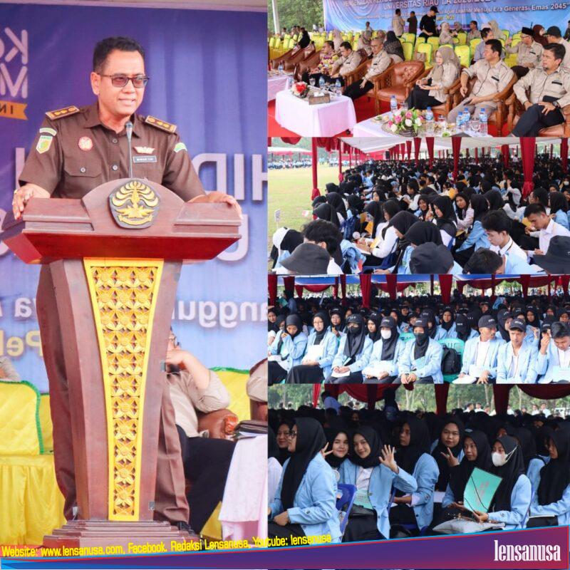 PEKANBARU, RIAU | LNC – Kepala Kejaksaan Tinggi Riau Dr. Supardi yang dalam hal ini diwakili oleh Kepala Seksi Sosial Budaya dan Kemasyarakatan Bidang Intelijen Kejaksaan Tinggi Riau Ali Rahim, S.H., M.H menjadi Narasumber dalam Kegiatan Pengenalan Kehidupan Kampus Bagi Mahasiswa Baru (PKKMB) Universitas Riau, di Lapangan Open Space, Kampus Bina Widya, Universitas Riau, Kamis (10 Agustus 2023) sekira pukul 10.30 WIB.