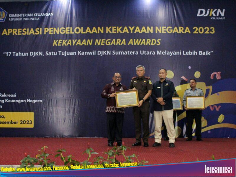 MEDAN | LENSANUSA.COM – Kepala Kejaksaan Tinggi Sumatera Utara Idianto, SH MH menerima penghargaan sebagai Pemenang Pertama (I) Bidang Pengelolaan Kekayaan Negara (Kanwil) Kategori Pengelolaan Barang Milik Negara (BMN) yang Produktif Unit Akuntansi Pembantu Pengguna Barang Wilayah (UAPB-W) dengan UAKPB > 15 satuan kerja disusul Kodam I / Bukit Barisan diurutan kedua dan Kantor Kemenkum HAM Sumut di urutan ketiga.