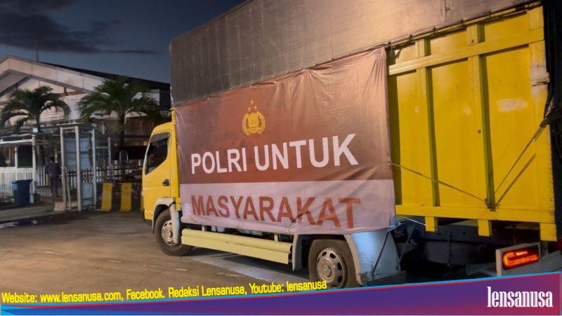 Dalam proses tersebut, satu unit truk dinas Korbrimob Polri digunakan untuk membongkar muatan bantuan logistik, kemudian kembali ke kapal untuk melanjutkan pengangkutan logistik dan personel ke wilayah tujuan berikutnya.
