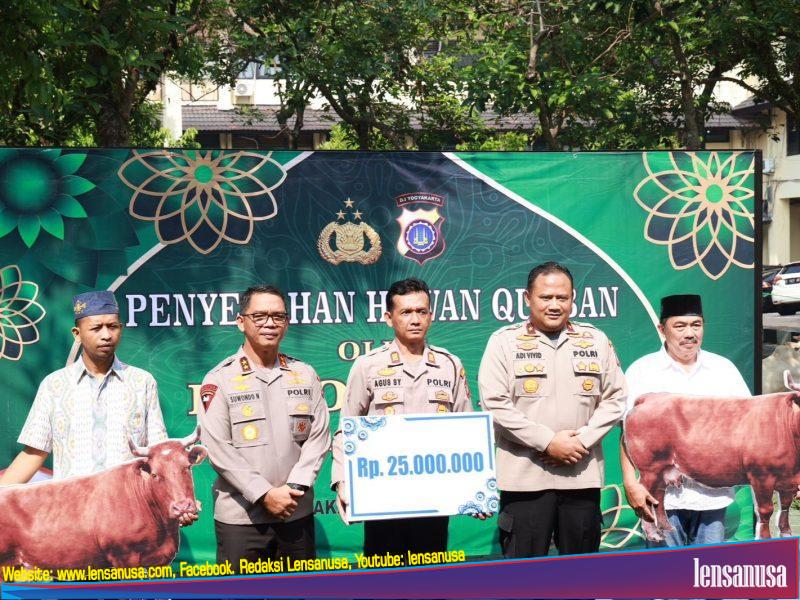 YOGYAKARTA | LENSANUSA.COM. – Sebanyak 30 ekor sapi dan 15 ekor kambing diserahkan oleh Kapolda DIY Irjen Pol Suwondo Nainggolan, S.I.K., M.H., beserta jajaran Pejabat Utama Polda DIY kepada masyarakat dan beberapa pondok pesantren di wilayah Yogyakarta, pada Minggu (16/6/2024)