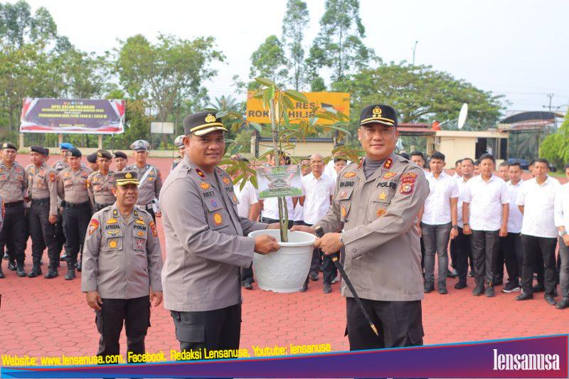 ROHIL| LENSANUSA.COM – Kapolda Riau Irjen Pol Dr Heryawan, S.I.K.,M.H.,M.Hum, memberikan bibit pohon saat Kapolres Rohil AKBP Isa Imam Syahroni, S.I.K M.H. merayakan ulang tahunnya yang ke 43 tahun. Dalam prosesinya penyerahan bibit pohon Kapolda Riau diwakili oleh Wakapolres Rohil Kompol Rikky Operiady, S.Sos,S.I.K.,M.I.K