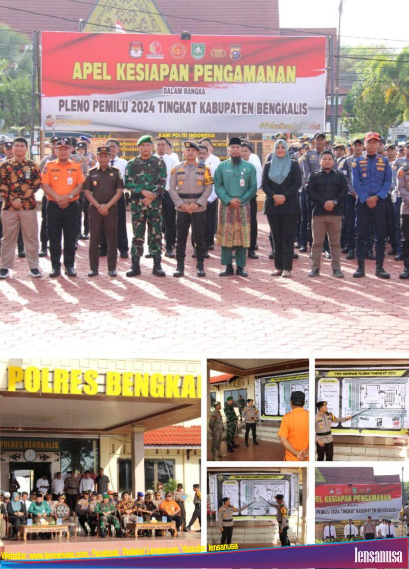 BENGKALIS | LENSANUSA.COM – Kapolres Bengkalis, AKBP Setyo Bimo Anggoro, memimpin apel kesiapan pengamanan dalam rangka Pleno Pemilu 2024 tingkat Kabupaten Bengkalis pada hari Selasa, 1 Maret 2024,