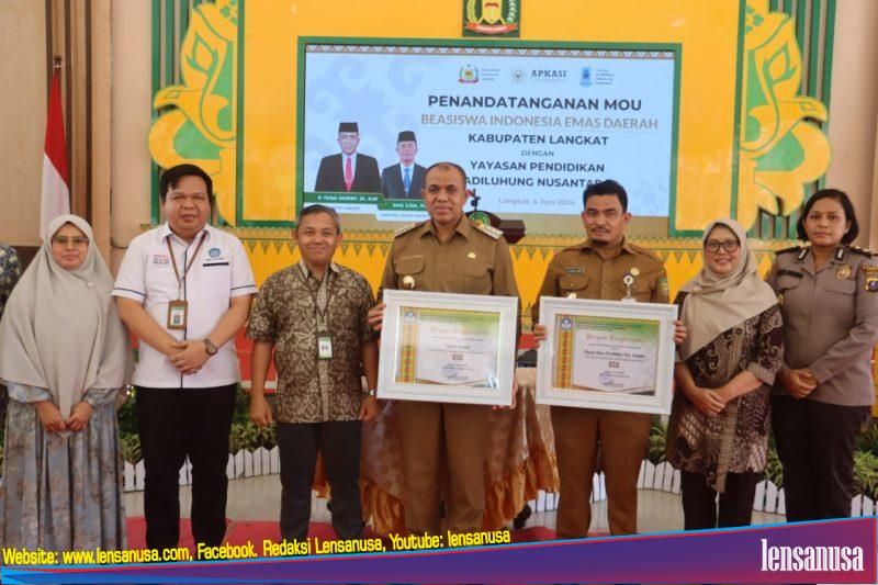LANGKAT | LENSANUSA.COM – Kapolres Langkat AKBP Faisal Rahamat HS SIK SH MH, di wakili Kabag Sdm Kompol Waskita Sheena Sari, S.E.,S.I.K.,M.H Hadiri Penandatanganan MoU dan Kerjasama dengan Yayasan Adihulung Pendidikan Nusantara untuk Program Beasiswa Indonesia Emas Daerah (BIE-D) dalam negeri dan luar negeri di Pendopo Jentera Malay Rumah Dinas Bupati, Selasa (04/06/2024) pagi.