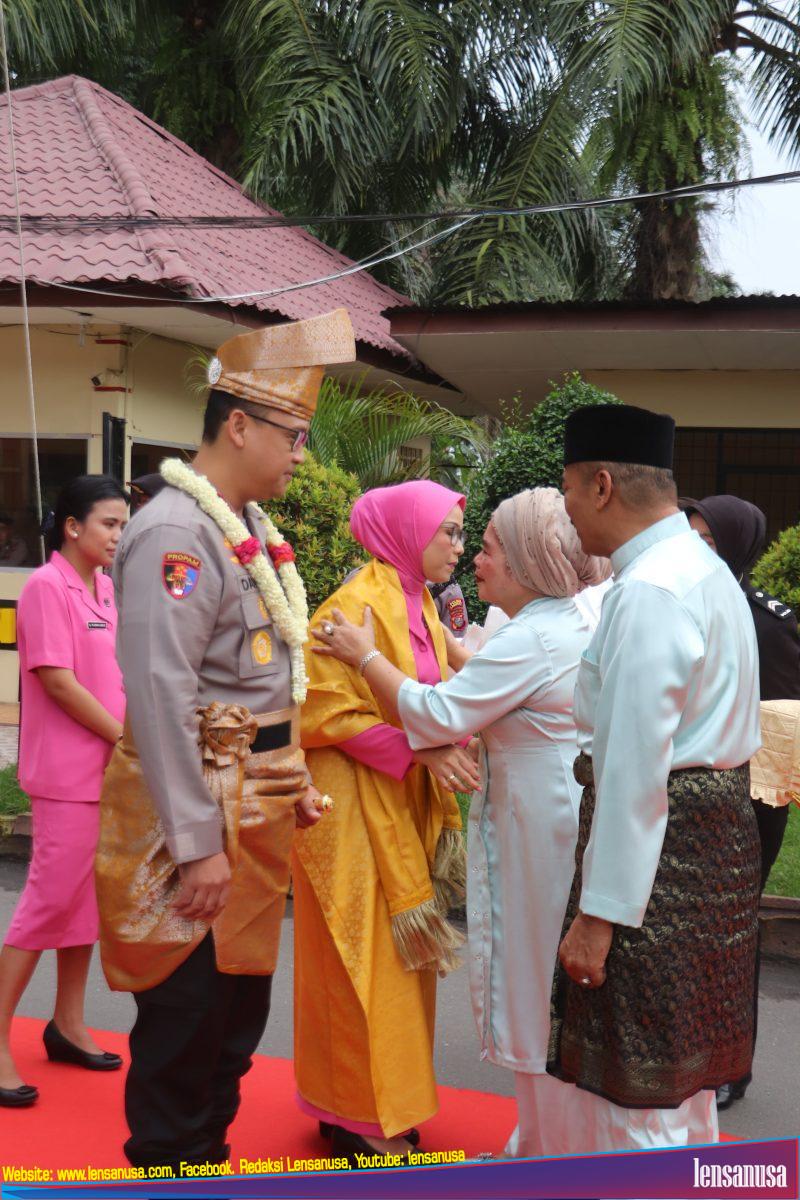 Kedatangannya disertai oleh istri dan mendapat sambutan hangat dari seluruh anggota Polres Langkat.