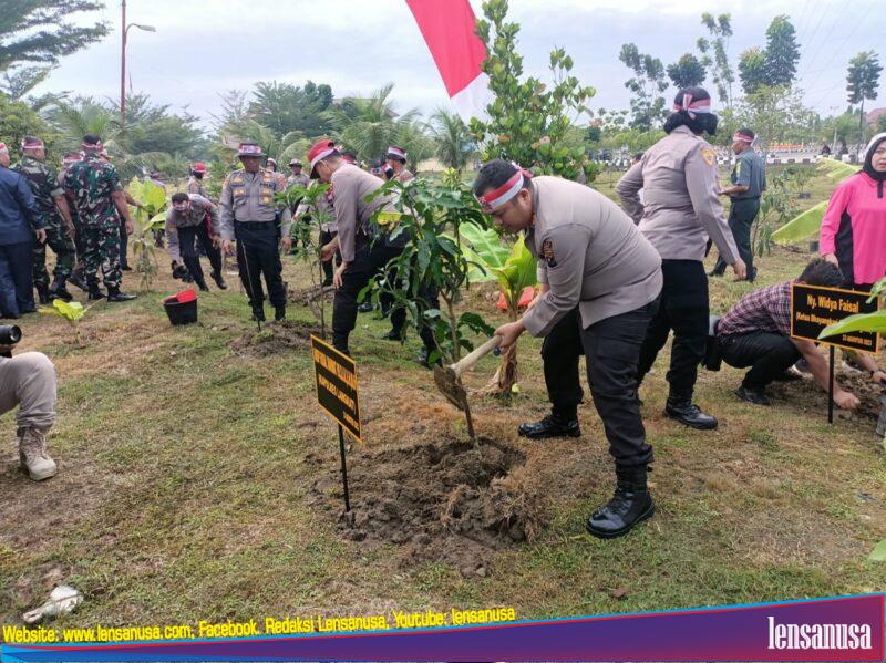 LANGKAT | LENSANUSA.COM – Pada hari ini Rabu tanggal 23 Agustus 2023 pukul 08.30 WIB telah dilaksanakan giat Penanaman Pohon Serentak secara Zoom Meeting di SPN Hinai Polda Sumut. Pelaksanaan giat Penanaman Pohon Serentak secara Zoom Meeting di SPN Hinai Polda Sumut dengan tema *Polri Lestarikan Negri Penghijauan Sejak Dini* dilingkungan SPN Polda Sumut Hinai , Penanaman sebanyak 4310 pohon di seluruh indonesia untuk Polres Langkat sebanyak 1000 pohon terdiri dari Pohon Durian, Jambu, Mangga , Rambutan dan Alpukat.