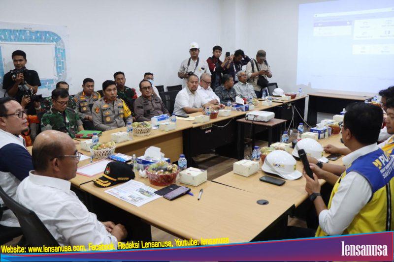 Peninjauan Menteri PMK diawali dengan melihat Gedung Utama Sport Centre PON, dilanjutkan menerima paparan denah area Sport Centre PON dari Dinas PUPR Provinsi Sumut.