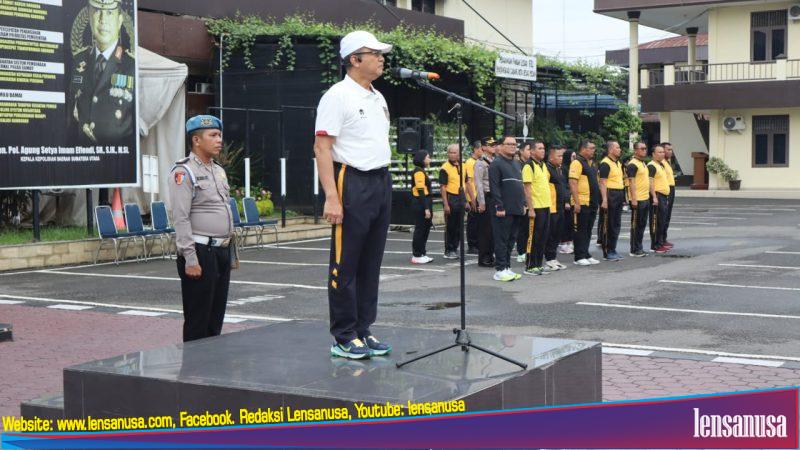 Setelah Ini mari kita melaksanakan olah raga dan senam bersama, tetap jaga kesehatan”.ucap Kombes Teddy Marbun