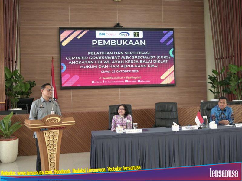 BOGOR | LENSNUSA.COM – Kepala Rumah Tahanan Negara (Rutan) Kelas I Medan Kanwil Kemenkumham Sumut, Alanta Imanuel Ketaren mengikuti Pelatihan Sertifikasi CGRS (Certified Government Risk Specialist) Angkatan I Tahun 2024 yang diselenggarakan di Pusdiklat BPKP, Ciawi, Bogor. Selasa (22/10).