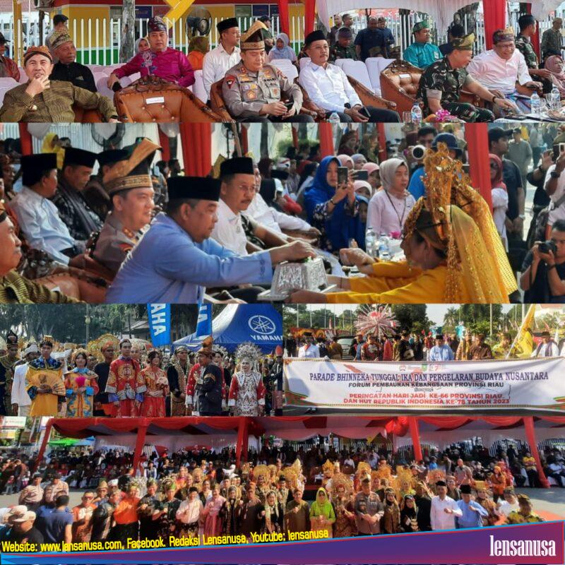 Kegiatan Parade Bhinneka Tunggal Ika & Pergelaran Budaya Nusantara Bersempena Peringatan Hari Jadi Ke-66 Provinsi Riau & HUT Kemerdekaan Republik Indonesia Ke-78 Tahun 2023 berjalan aman ,tertib, lancar, serta berlangsung dalam keadaan kondusif.