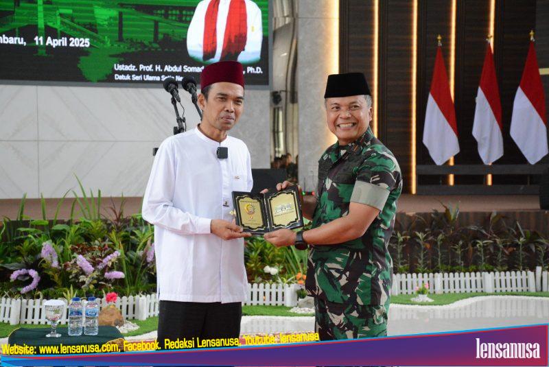 PEKANBARU | LENSANUSA.COM – Dalam Rangka menyambut HUT Ke 66 Korem 031/WB adakan Tausiyah Agama dengan mengundang Ustadz Prof. H. Abdul Somad, Lc., D.E.S.A., Ph.D. atau yang biasa disapa dengan UAS, Komandan Korem 031/WB Brigjen TNI Sugiyono yang di dampingi oleh Para Kasi Korem dan Dandim Jajaran Korem 031/WB menyambut kedatangan UAS di Makorem 031/WB pada Jumat, 11 April 2025.