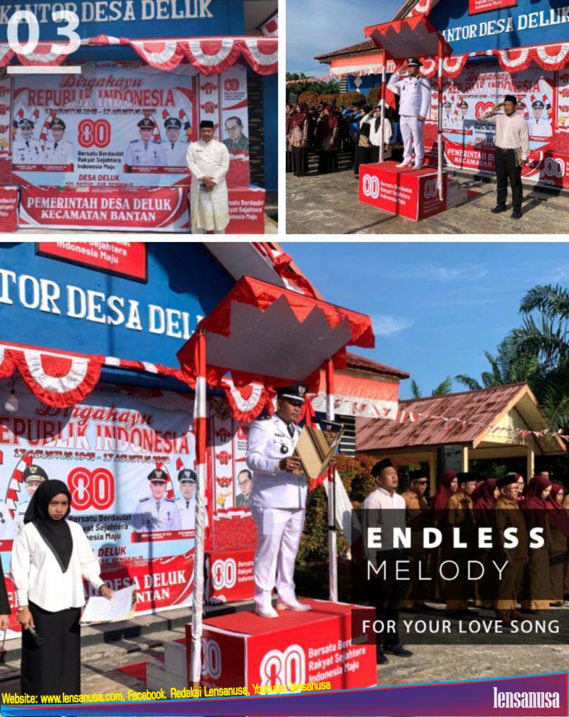 BENGKALIS | LENSANUSA.COM — Kepala Desa Deluk, Setia Irawansyah, A.Ma., memimpin langsung upacara peringatan Hari Ulang Tahun (HUT) ke-80 Kemerdekaan Republik Indonesia di halaman Kantor Desa Deluk, Kecamatan Bantan, Kabupaten Bengkalis, pada Minggu (17/8/2025).
