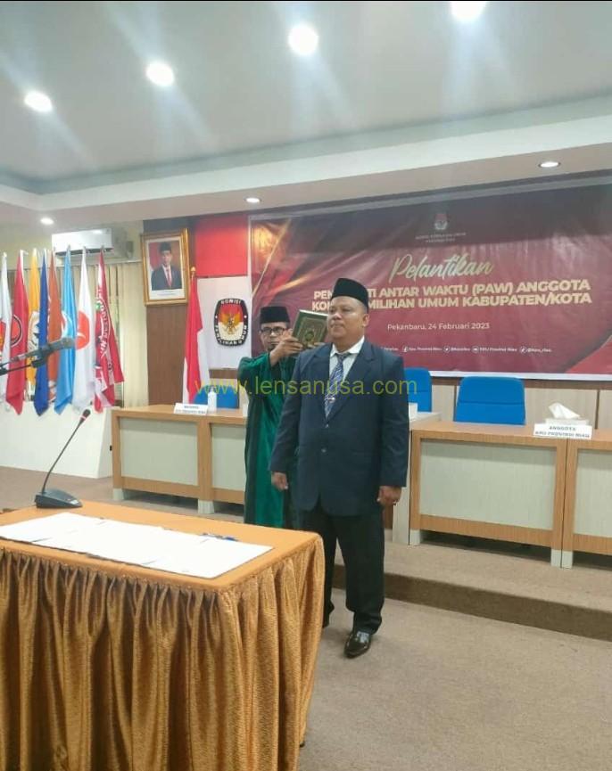 BENGKALIS | LENSANUSA.COM – Ketua Komisi Pemilihan Umum (KPU) Republik Indonesia Hasyim Asy’ari , SH, MH resmi melantik Indra, S.H.I sebagai Pengganti Antar Waktu (PAW) Anggota KPU Kabupaten Bengkalis menggantikan Anggi Ramadhan, Jum’at 24 Februari 2023.