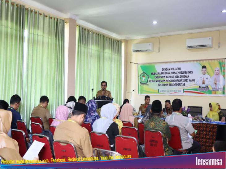 KAMPAR | LENSANUSA.COM – Ketua Koordinator Kegiatan Kesejahteraan Sosial (KKKS) Deswita Kamsol yang di wakili oleh Kadis Sosial Kabupaten Kampar Zamzami Membuka Secara Lansung Musyawarah Luar Biasa (Muslub) KKKS Kabupaten Kampar Tahun 2023 dengan agenda pembahasan Anggaran Dasar/Anggaran Rumah Tangga (AD/ART) KKKS Kabupaten Kampar di Aula Kantor PKK Kampar, Senin 15/05/2033.