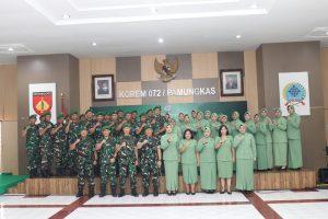 Turut hadir dalam upacara Para Kasi Korem 072/Pamungkas, Ketua Persit KCK Koorcabrem 072/Pamungkas Ny. Syahfitri Bambang Sujarwo, Perwira Korem 072/Pamungkas dan Pengurus Persit.*SY.