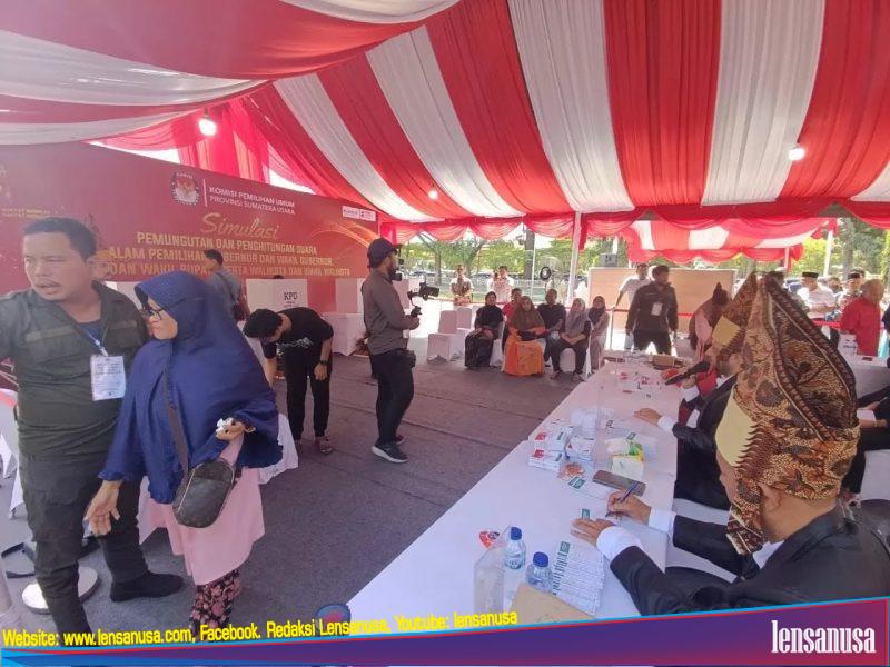 SIANTAR | LENSANUSA.COM – Komisi Pemilihan Umum (KPU) Provinsi Sumatera Utara (Sumut) menggelar simulasi pencoblosan kertas suara Pilkada Serentak 2024, di Lapangan Adam Malik Kota Pematangsiantar, Rabu (23/10).