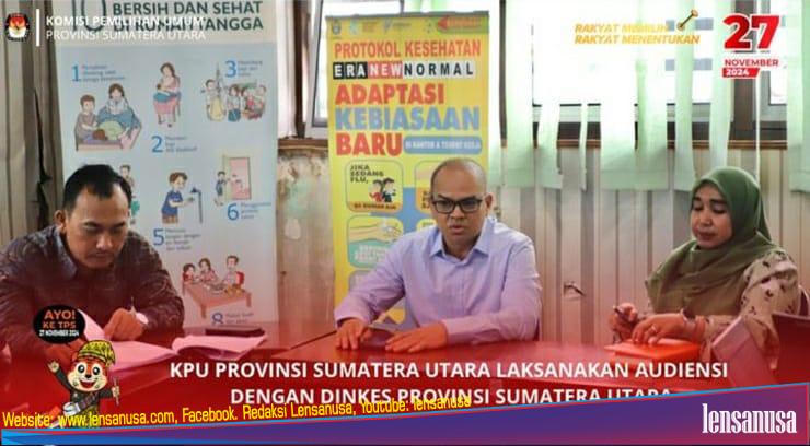 MEDAN | LENSANUSA.COM – KPU Sumatera Utara melaksanakan audiensi terkait pemeriksaan kesehatan pada Pemilihan Gubernur dan Wakil Gubernur tahun 2024 dengan Dinas Kesehatan (Dinkes) Provinsi Sumatera Utara pada hari Jum’at (09/08/2024) di kantor Dinkes Provinsi Sumatera Utara.