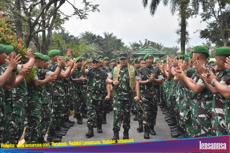 Kedatangan Pangdam beserta rombongan disambut langsung oleh Letkol INF Bambang Budi Hartanto Danyonif 132 beserta istri, para Perwira Yonif 132 beserta istri, serta seluruh Prajurit Yonif 132/BS. Diawali dengan Laporan Danyonif 132/BS dan Terima Hormat jajar, juga ada Pemasangan tanjak serta Tari persembahan dalam Penyambutan tersebut, menjadi semakin meriah di iringi lagu lagu oleh Prajurit Yonif 132/BS. Selanjutnya Pangdam menanam pohon durian di depan mako Yonif 132/ BS di dampingi Irdam, Danrem 031/WB dan para Asisten Kapendam dilanjutkan pohon dan Foto bersama.