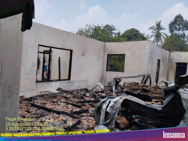 LAMPUNG,TANGGAMUS|LNC-Kebakaran rumah warga atas nama Sukiman umur 54 tahun di pekon Tegal Binangun kecamatan Sumber Rejo Tanggamus Lampung,Jum’at , 25 Agustus 2023.