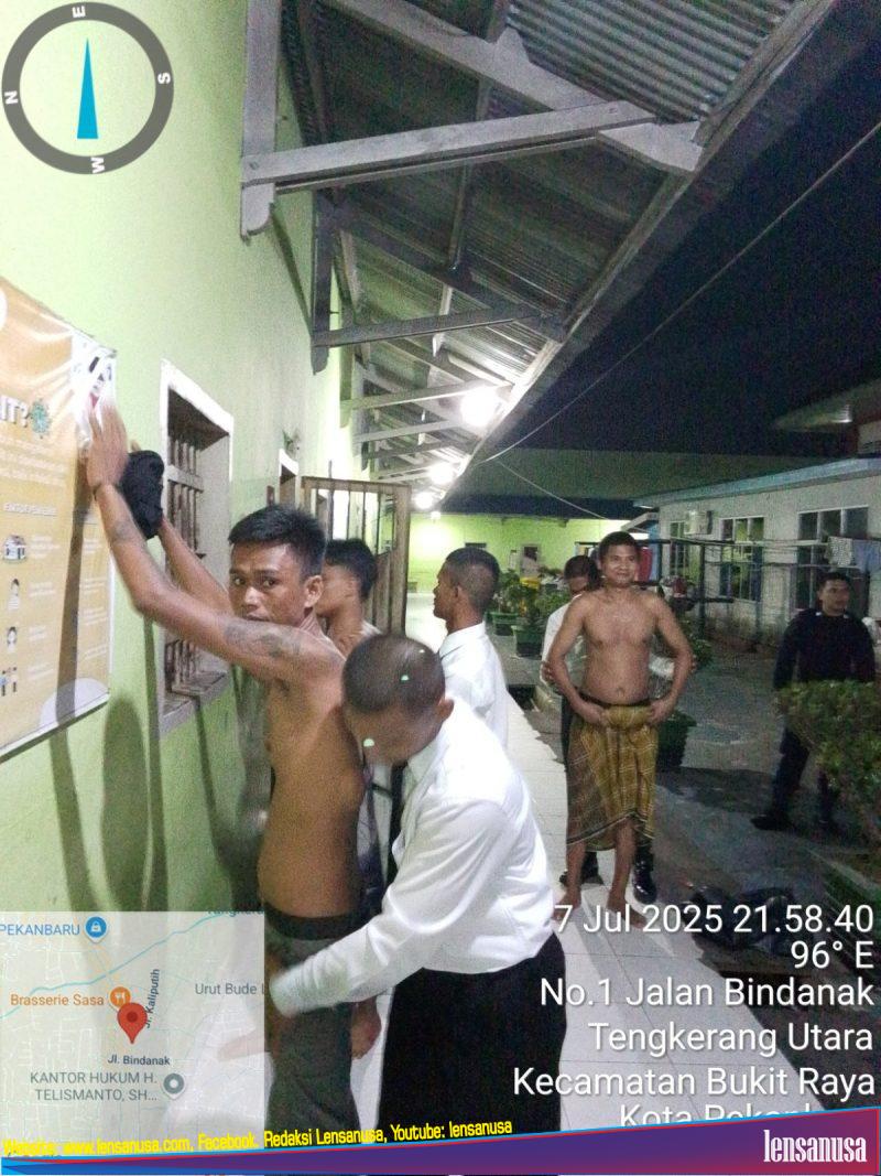 PEKANBARU| LENSANUSA.COM -Lembaga Pemasyarakatan (Lapas) Kelas IIA Pekanbaru kembali menggelar razia kamar hunian warga binaan. Berbeda dari biasanya, kali ini kegiatan razia dan penggeledahan kamar hunian warga binaan melibatkan 8 (delapan) orang Calon Pegawai Negeri Sipil (CPNS) Lapas Kelas IIA Pekanbaru. Ini merupakan bentuk komitmen melaksanakan Arahan 13 (tiga belas) Program Akselerasi Menteri Imigrasi dan Pemasyarakatan khususnya pada poin 1 (satu) yakni Memberantas Peredaran Narkoba dan Pelaku Penipuan dengan berbagai modus, Senin malam (08/07).