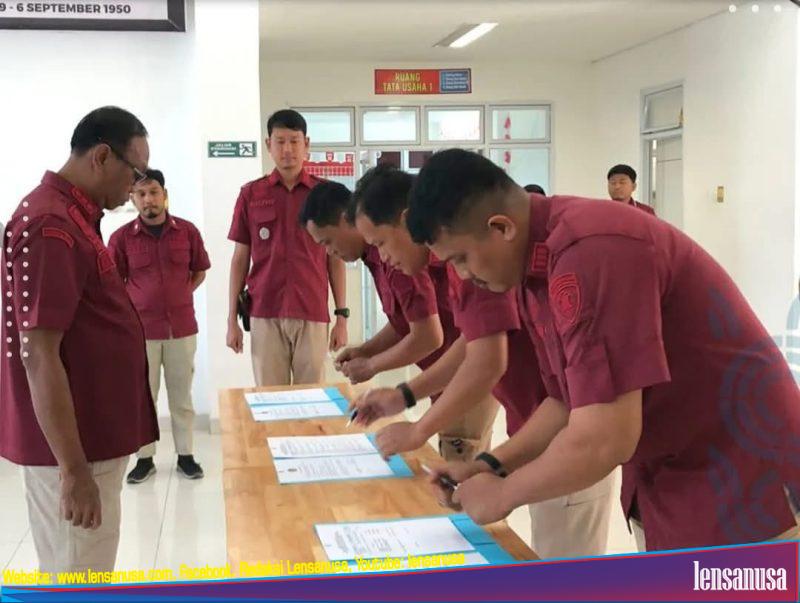 LENSANUSA.COM | PEKANBARU – Lembaga Pemasyarakatan (Lapas) Narkotika Kelas IIB Rumbai menggelar Penandatanganan Perjanjian Kinerja antara Plt. Kepala Lapas Narkotika Kelas IIB Rumbai dengan seluruh Pejabat Struktural beserta jajaran. Acara tersebut berlangsung pada Gedung Administrasi dengan penuh khidmat dan dihadiri oleh seluruh pegawai, Kamis (6/2/2015).