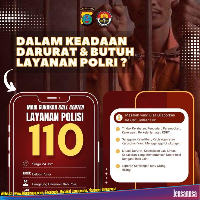 MEDAN | LENSANUSA.COM – Dalam rangka memberikan pelayanan terbaik kepada masyarakat, Kepolisian Daerah Sumatera Utara (Polda Sumut) mengimbau masyarakat untuk memanfaatkan layanan Call Center Polisi 110 saat menghadapi situasi darurat yang membutuhkan kehadiran cepat aparat kepolisian.