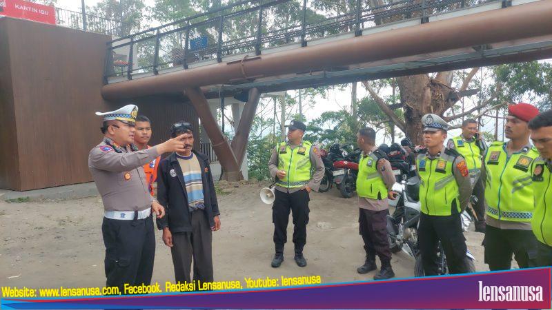 Sementara itu, di Menara Pandang Tele, pemasangan traffic cone dan himbauan kepada pengendara dilakukan guna mencegah kemacetan akibat parkir sembarangan.