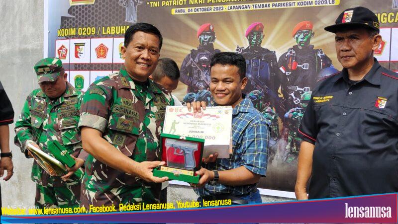 Atas prestasinya tersebut, Berry menerima plakat dan hadiah yang diserahkan oleh Danramil 11 Kota Pinang Mayor Inf Parlindungan Sinaga.