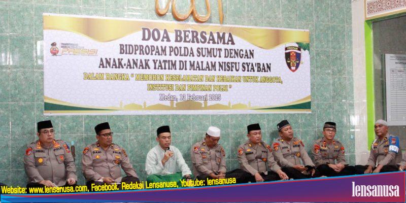 LENSANUSA.COM |MEDAN – Bidan Profesi dan pengamanan Polda Sumatera menggelar doa bersama puluhan anak yatim piatu di Masjid Al-Hidayah Mapolda Sumut, Kamis (13/2) malam.