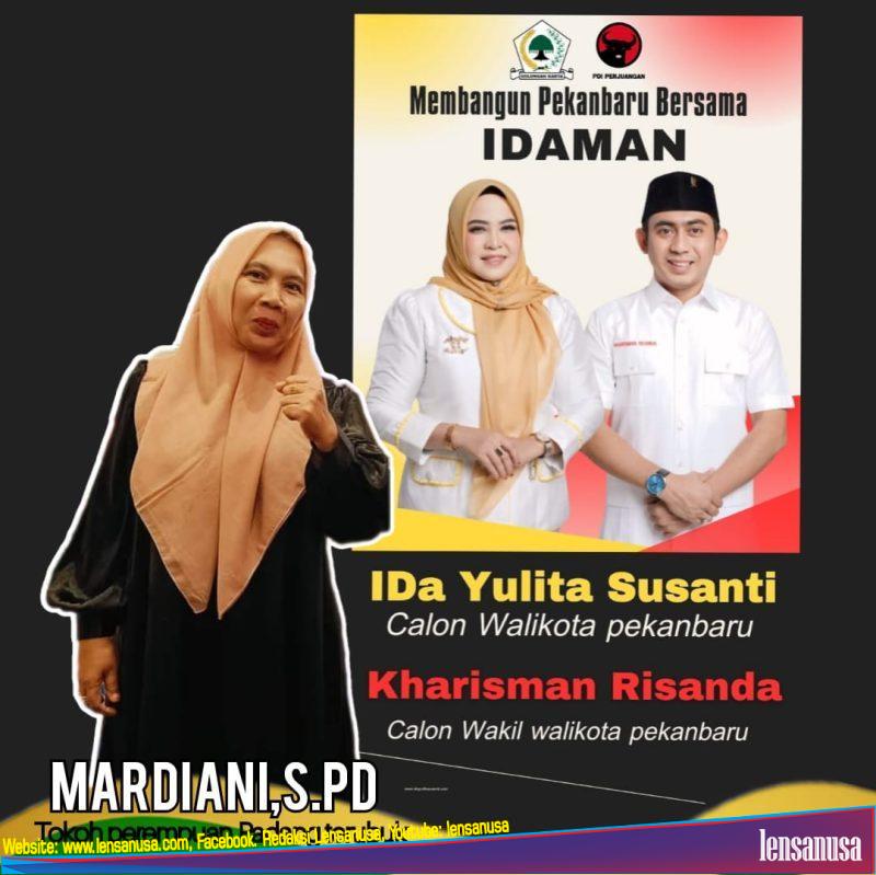 LENSANUSA.COM | PEKANBARU,– Tokoh perempuan kelurahan Padang Terubuk Mardiani S.pd menyatakan dukungan penuh untuk calon walikota dan wakil walikota Pekanbaru IDAMAN (Ida Yulita Susanti & Kharisman Risanda dalam proses pencalonan menuju Pemilihan Walikota (Pilwako) Pekanbaru 2024.