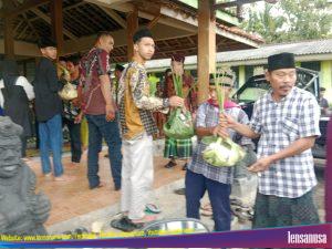 Warga menerima “Sarang” (Nasi berkat) setelah rangkaian ritual (doa) kenduri dilaksanakan.