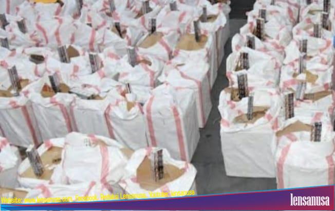Sebagian Karton diikat dengan tali plastik warna hitam, sebagian lagi Rokok yang di dalam karton di masukkan ke dalam karung warna putih, dan puluhan karton berwarna coklat padi polos, sedang menumpuk dalam Gudang.