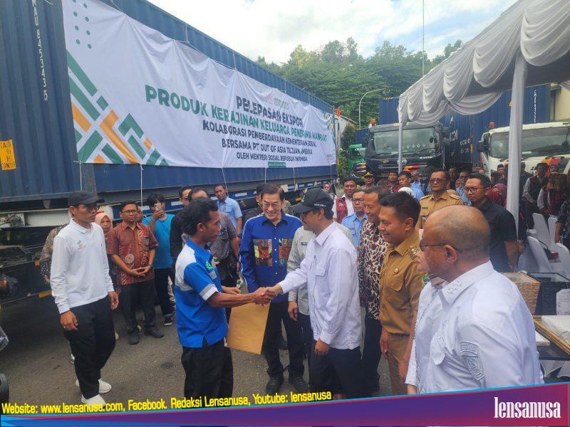 BANTUL | LENSANUSA.COM. – Menteri Sosial RI, Drs. K.H. Saifullah Yusuf, S.I.P melepas ekspor produk kerajinan hasil karya Keluarga Penerima Manfaat (KPM) ke Amerika Serikat di PT Out Of Asia (OOA), Pajangan, Bantul, Selasa (9/9/2025).