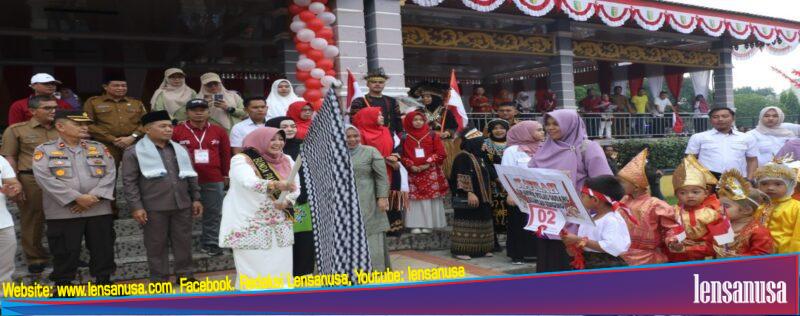 Bupati Kuantan Singingi Drs. H. Suhardiman Amby, Ak. MM di wakili Sekretaris Daerah H. Dedi Sambudi, S. Kep, SKM.,M.Kes menghadiri pawai karnaval didampingi oleh Ketua TP. PKK Hj. Yulia Suhardiman Amby, Wakapolres Kompol. Lilik Surianto, S. ST., SH, Kaban Kesbangpol Muhjulen Arwan, SH.,MH, Camat Kuantan Tengah Risman Ali, Bunda PAUD dan peserta pawai
