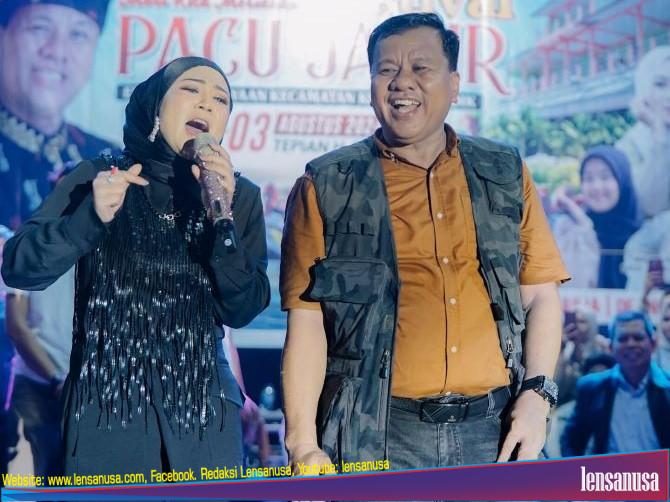 Meriahkan Malam Hiburan Festival Pacu Jalur di Lubuk Jambi, Bupati Suhardiman Hadir Bersama 3 Artis Cantik