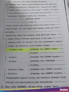 PEKANBARU | LENSANUSA.COM – Pergantian posisi jabatan Komisaris Utama dan Direktur Utama hingga Direktur dalam Akta Notaris Pendirian PT. SUNTARA GAJAPATI (SGP) pada Tahun 2001, diduga, Komisaris Utama (Komsut) sebelumnya pada Tahun 1995, Sunarta tidak melakukan koordinasi hingga Rapat Umum Pemegang Saham (RUPS) lebih dulu bersama Direktur Utama (Dirut) PT SGP, Darwin Susandy.