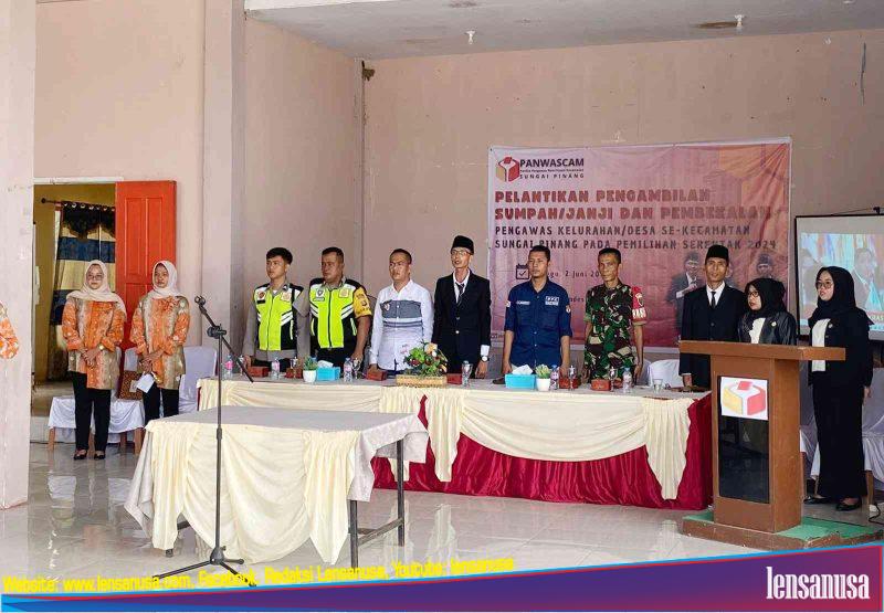 Jajaran Forkopincam turut hadir Camat Sungai Pinang diwakili oleh Sekcam, Ketua PPK Kecamatan Sungai Pinang, Ketua Panwascam, Babinsa Sungai Pinang, Kades Sungai Pinang, Bhabinkamtibmas, dan para Panwas Desa (PKD) yang dilantik.